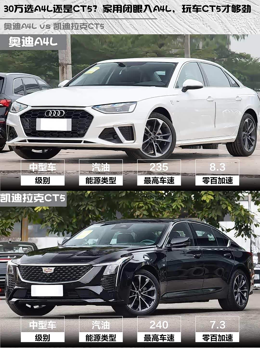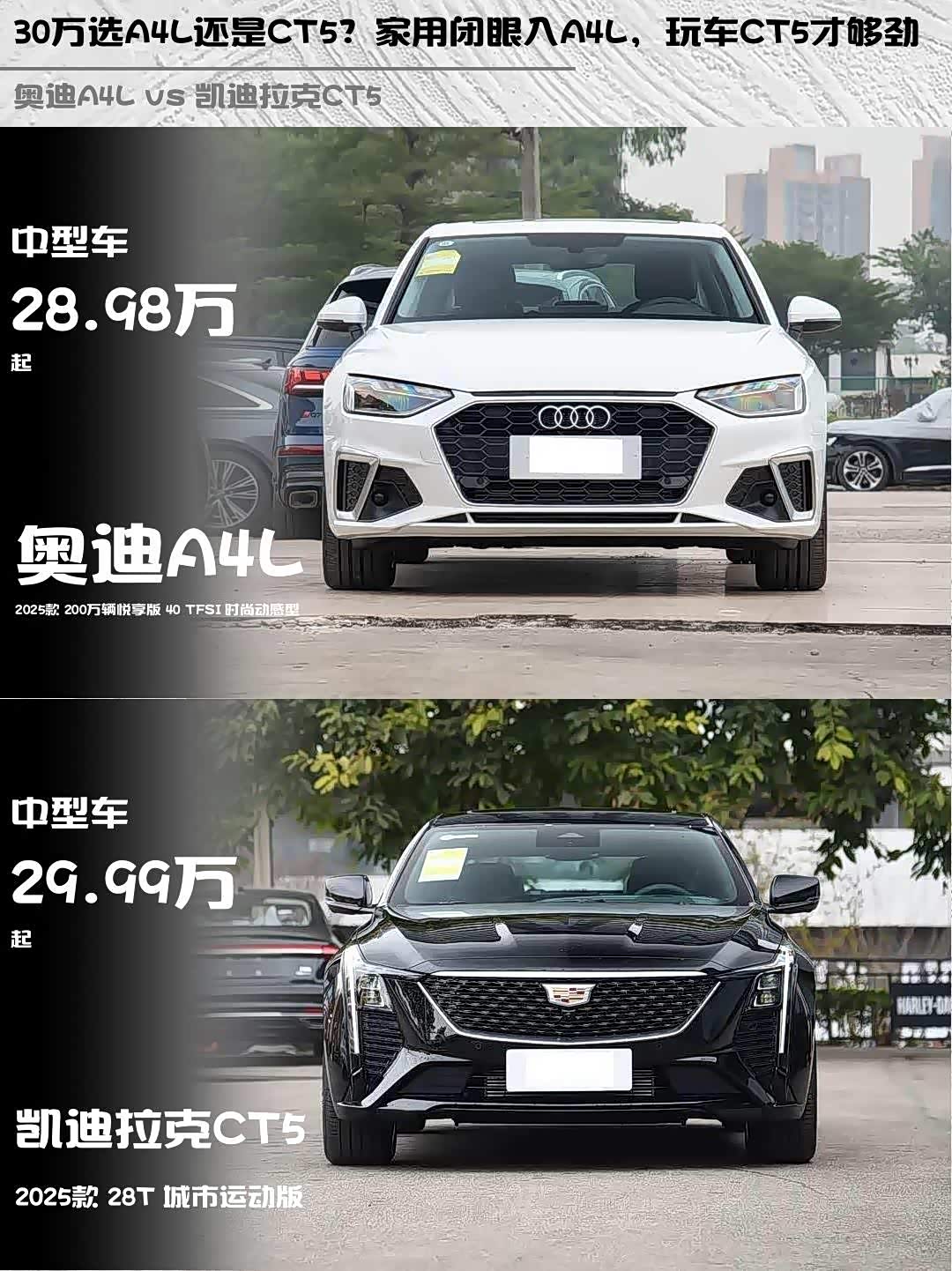 最近后台好多兄弟在问:30万预算,奥迪A4L 2025款200万辆悦享版和 凯迪拉克CT5(参数|询价) 2025款28T城市运动版怎么选?今天直接上干货对比!🔥