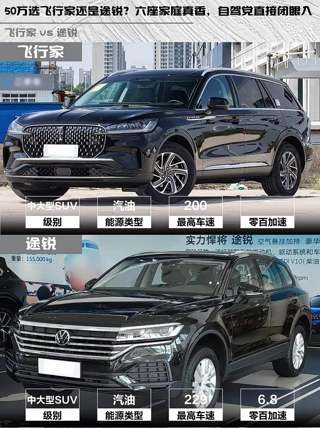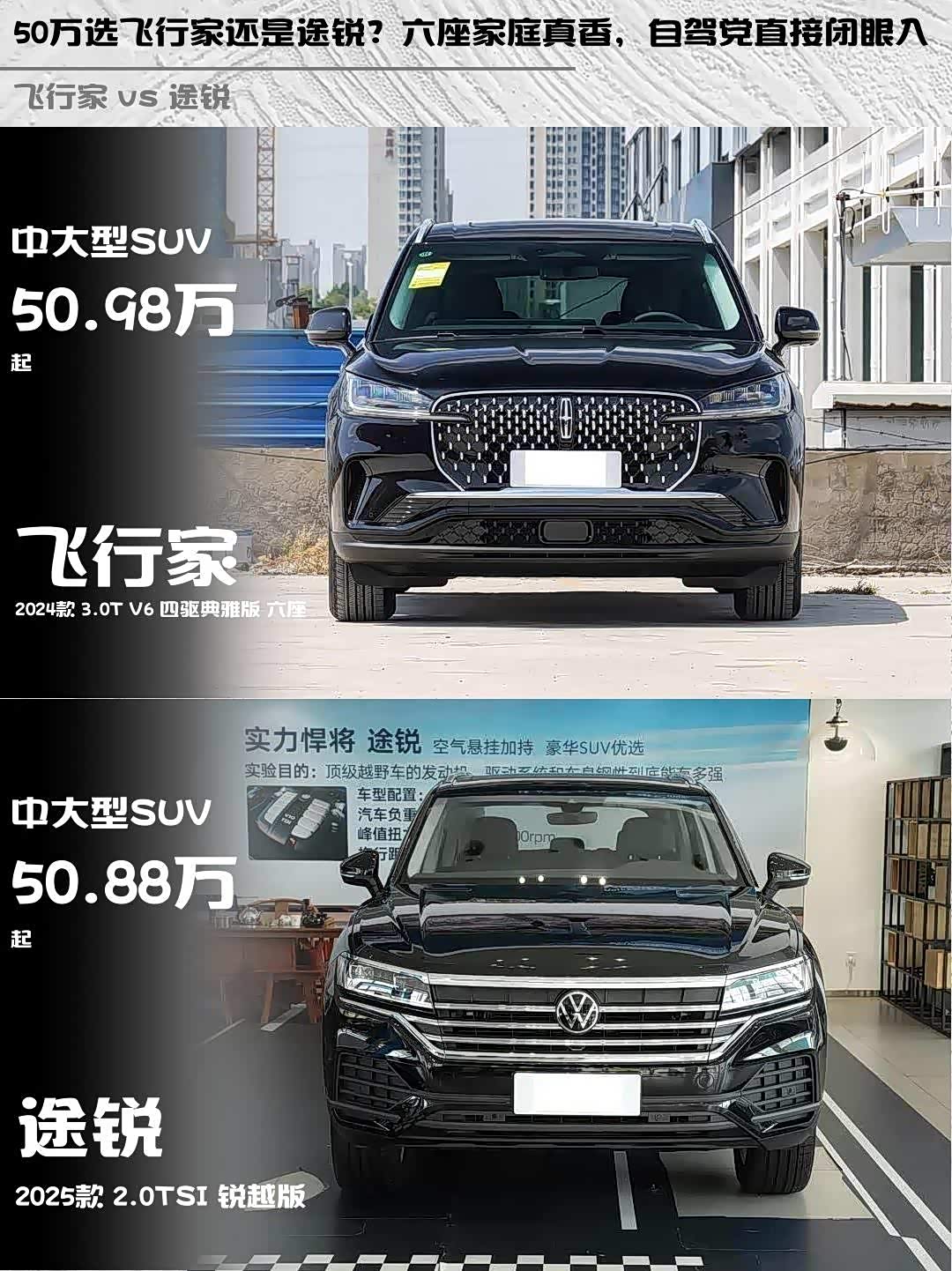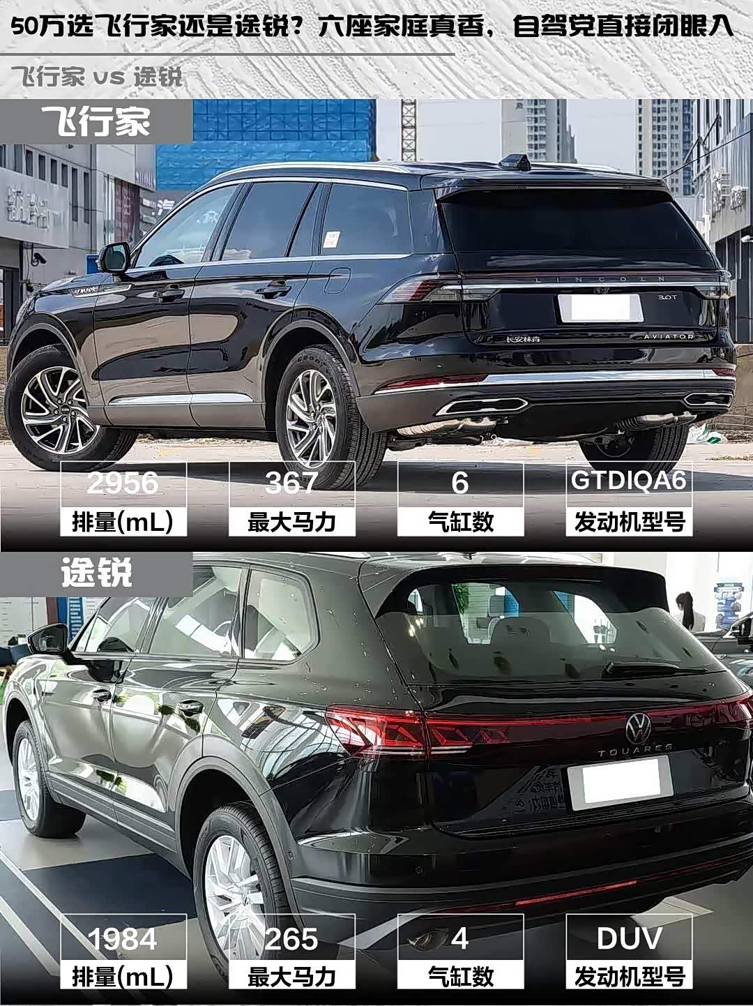 最近在50万级豪华SUV里纠结了好久,最终锁定林肯飞行家2024款 3.0T V6四驱典雅版六座和 大众途锐(参数|询价)2025款2.0TSI锐越版,深度对比后发现了不少有意思的差异点🔥