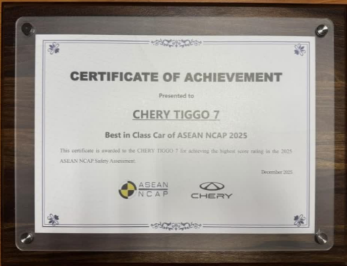 这份荣耀并非偶然,而是瑞虎7全球安全实力的集中体现。至此,它已先后揽获中国C-NCAP、澳洲ANCAP、欧洲Euro NCAP、东盟ASEAN NCAP四项五星安全认证,成为中国品牌中唯一实现四项“安全大满贯”的车型,同时还斩获“ASEAN NCAP 2025最佳车型”,奇瑞品牌也被授予“东盟道路安全先锋奖”及“最佳贡献奖”,从产品到品牌获得国际全面认可。