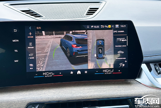 评测车选装了360度全景影像,可以多角度查看,并配有可随动转向的倒车辅助线,能够减轻泊车时的压力。经实测,整体画质清晰且无畸变。