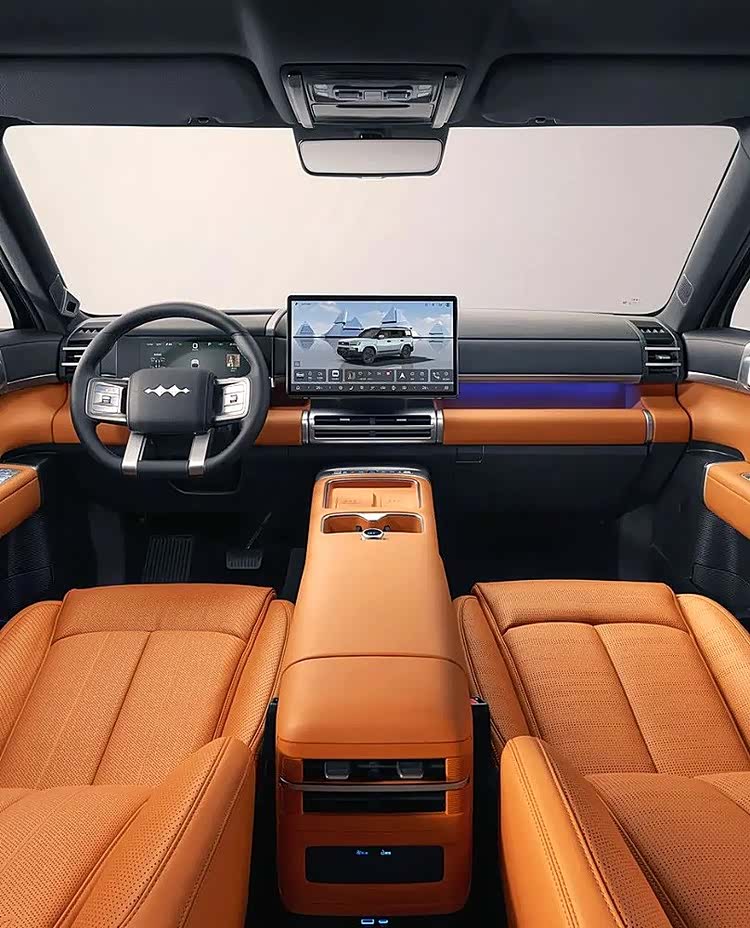 内饰方面,钛7以“方圆”为设计核心,将硬朗的线条与柔和的弧线相结合。提供雪隐灰、暮云橙、日蚀蓝三种内饰配色可选。