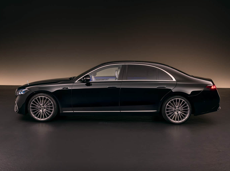 既然是中期改款,奔驰设计师选择让现款车型的侧面造型得以保留,所以大家可以看到现款S级的影子。若是非要寻找不同,或许是长轴版本的车长增加一些,再配合全新样式的20英寸轮毂以及后视镜外壳等细节,让视觉效果更符合当下主流审美。而车尾也没有意外的采用“三叉星徽”尾灯,点亮之后还是很有特点,只可惜与E级有些过于接近。另外值得一提的是,新款S级依旧有两种风格可选,但是二者共同点在于都开始注重年轻消费群体的审美,比如镀铬饰条改为熏黑套件。