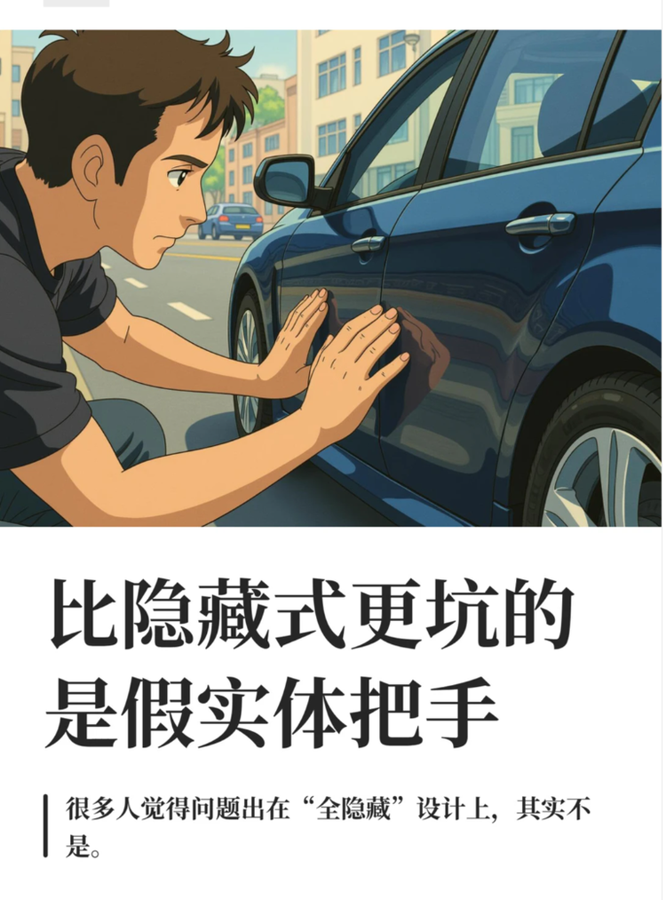 汽车的安全设计,从来都藏在细节里。车门把手看似是汽车上微不足道的小部件,却直接关乎极端情况下的生命安全。2027 年新国标的落地,是汽车安全领域的一次重要升级,也让消费者重新认识到:选车的底线,从来不是花哨的设计和满配的功能,而是那些能在关键时刻发挥作用的安全细节。拒绝假实体把手,认准机械备份,才是选车时最该坚守的安全原则。