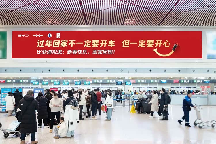 春节归家,是刻在中国人心底的期盼。当各大品牌都在聚焦自驾归途、出行工具时,比亚迪却在机场、商圈等户外大屏上,说出了一句格外戳心的话:过年回家不一定要开车,但一定要开心。