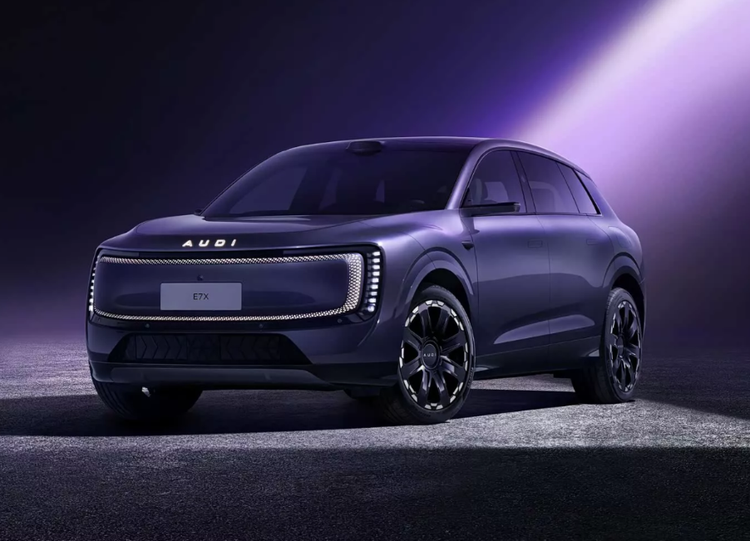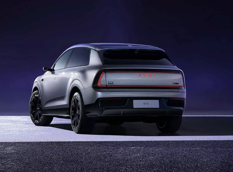 真的,你们看看这张E7X的量产实车图,车头不是四个圈,而是发光的“AUDI”字母标。