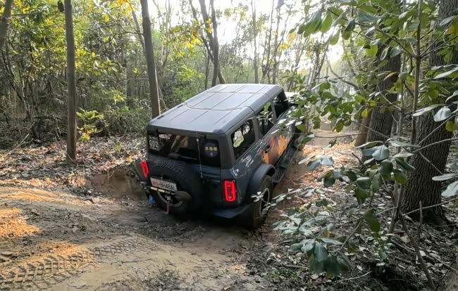 其实,说实话,这条吓住普通SUV的林间山路,对烈马来说真的小儿科!既没有深坑——烈马45度的接近角和37的离去角根本没有发挥余地,又没有交叉轴——烈马的前后锁都没有施展机会!