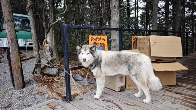 门口还有几个泊狗位,真是讲究!这只阿拉斯加是老板自家养的,可乖顺了!随便撸!