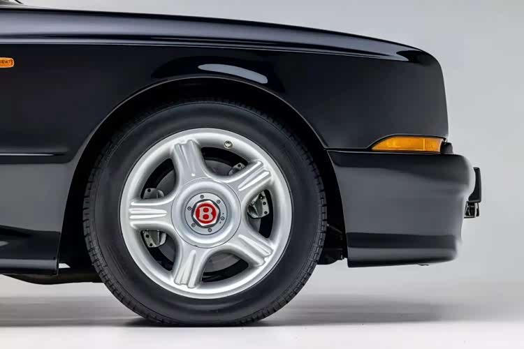 采用经典黑色外观的Continental SC,采用的是网状格栅设计,大灯是标志性的四圆灯组设计,并且还可以看到红色宾利标识,和运动的车身比例相得益彰,看来红标就是和运动基因分不开的一种设计语言。此外,还能看到全车有精致的镀铬装饰和五辐18英寸轮毂,放现在来看,18英寸不算什么,现在很多中型车都能配备18英寸甚至19英寸轮毂,但是,这是28年前的设计,在那个时代这已经是很前卫且运动的元素。