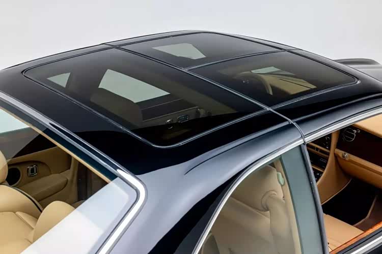 具体来说,Sedanca指的是前排乘客头部上方的可拆卸车顶,可以让那个年代的车主,在体验到敞篷车的驾驶乐趣的同时,还能够享受封闭式车厢的静谧与舒适。宾利采用的是先进的玻璃车顶设计,实现了当时其他品牌无法企及的驾驶体验。这款车配备两块可拆卸的玻璃面板和一块固定于后排乘客上方的玻璃面板。当前排玻璃面板拆卸下来的时候,可以收纳于行李箱的储物隔板中。无论这款玻璃面板是安装还是拆卸,这种独特的设计都能确保座舱内部的开扬感与通透性。这台车的拍卖清单还特别注明,该车借鉴了Azure敞篷版的一些结构部件,以确保在拆除顶篷后车身依然保持足够的刚性。