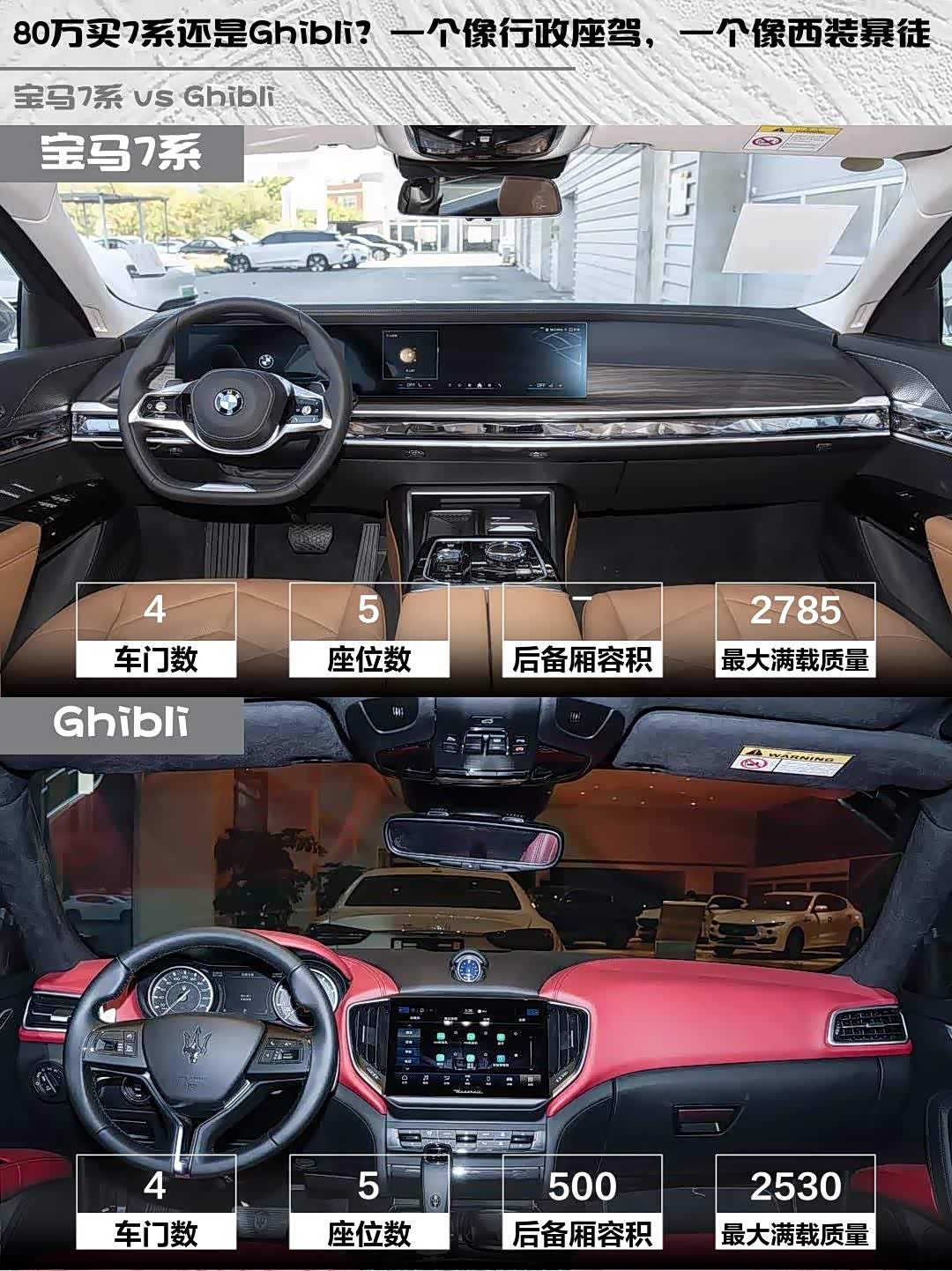 要品牌格调+改装潜力选Ghibli,但建议淘二手——新车86.98万性价比真心一般。735Li虽然指导价80.8万,但豪华配置更全面,适合既要面子又要里子的精英党。话说回来,你们觉得玛莎的标值20万溢价吗?评论区见真章!