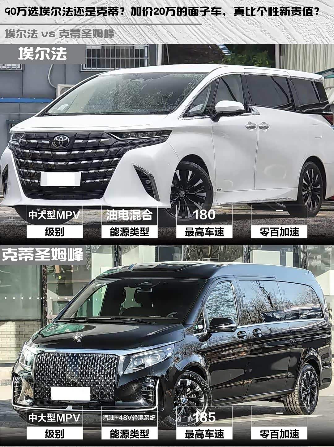 车家号·0浏览·2026-02-15 08:24 · 北京最近帮老板选商务车,深度对比了埃尔法 2024款 双擎 2.5L 臻享版和 克蒂圣姆峰(参数|询价) 2025款 2.0T 圣姆峰MH7-领先版,这两款90万级MPV简直把“面子工程”玩出花来了!🚗💨