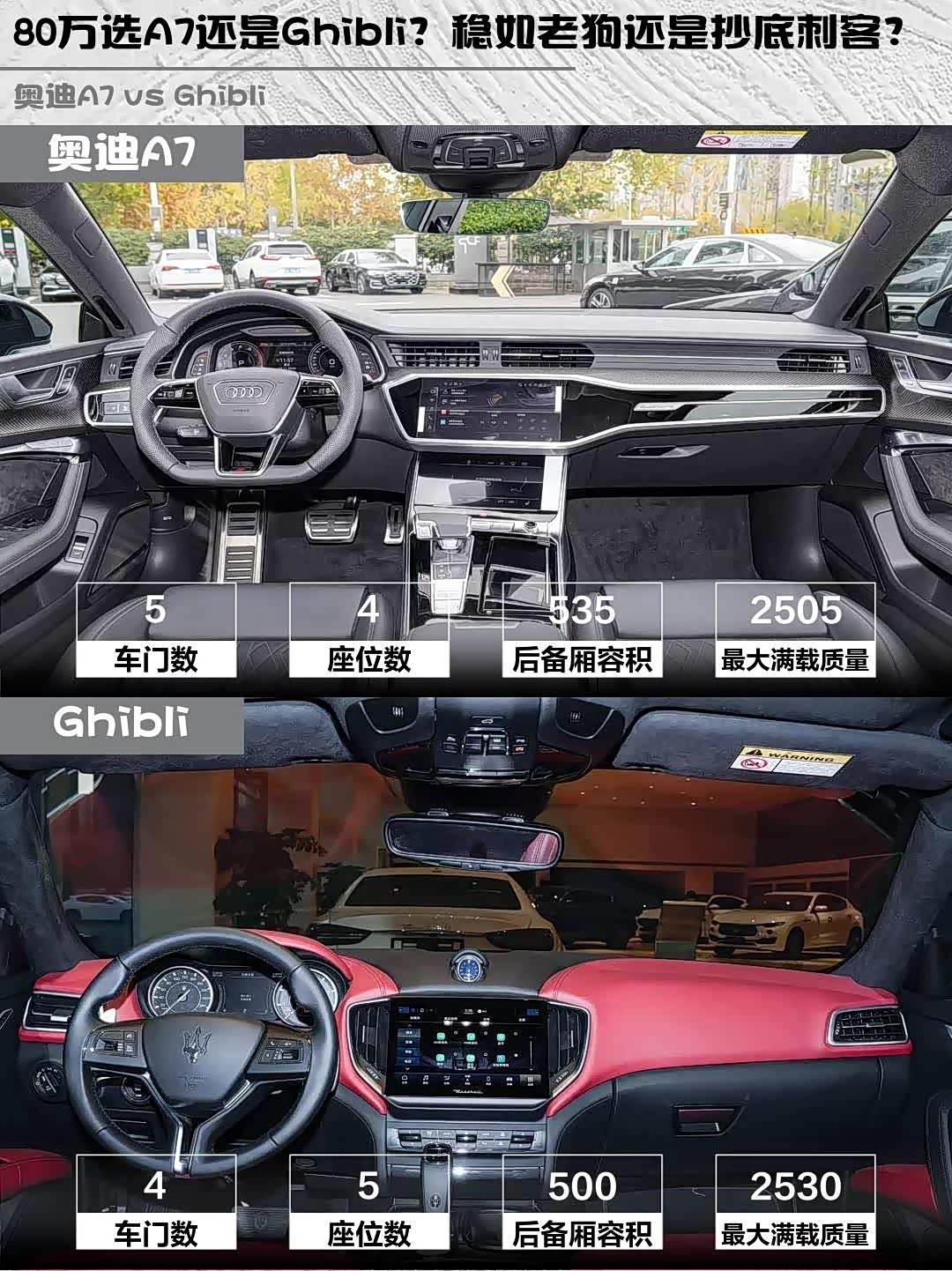 PS:Ghibli 2.0T GT已停售,现在抄底可能要赌库存车,A7新款现货更稳~你更倾向哪台?评论区见!