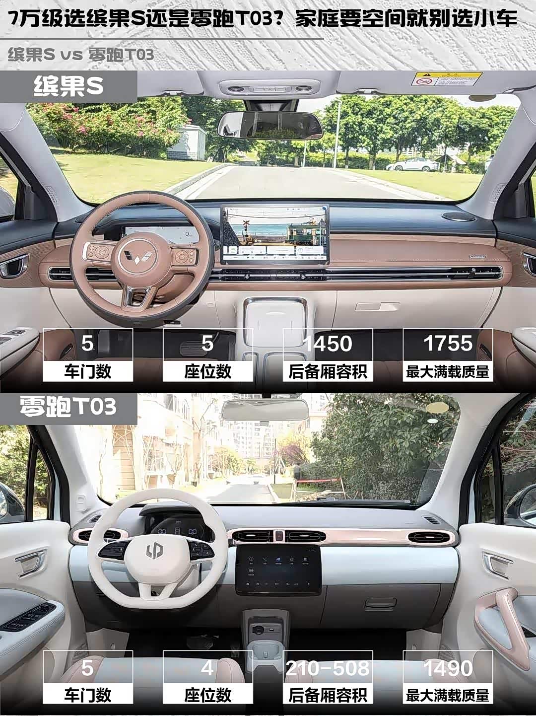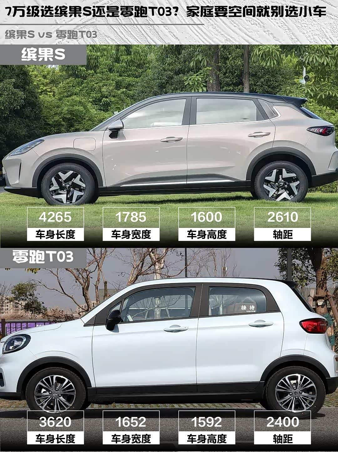 缤果S不愧是小型车级别,4265mm车长比T03的3620mm明显大一圈!实测后排坐三个成年人无压力,1450L下沉式后备箱能塞下整套露营装备⛺️。T03虽然车身小巧好停车,但4座布局+210L后备箱(放倒座椅可扩展),更适合1-2人日常代步。需要经常载人载物的话,缤果S的空间优势太香了~