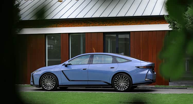 全新一代ES车侧打破了传统三厢轿车造型,上挑的腰线配合溜背式设计,营造出更加动感的车身姿态。车身细节处加入了黑色阶梯式装饰线条,提升层次感的同时也让整车显得更个性。当然最受争议的也是车侧L型的折线,如果是纯黑版本还好,但如果是其它颜色确实有些跳脱视觉效果,需要时间去适应。不过雷克萨斯设计师须贺厚一曾解释称“黑色线条能把空气更顺畅地导流到后方”,并表示这种设计思路依旧能让车身保持优雅的外观。