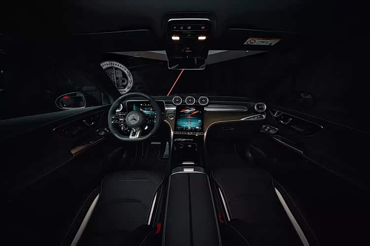 外观延续AMG家族直瀑式格栅,引擎盖带阿法特巴赫徽章,前包围采用三段式散热布局,车尾贯穿式尾灯搭配双边共四出排气。内饰配备12.3英寸全液晶仪表+11.9英寸中控屏,MBUX车机与AMG专属UI加持,可选金色饰件与碳纤维内饰套装。