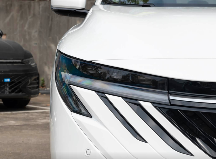 首先我们就来说一下外观的设计,其实上一个版本的轩逸,在我的认知当中就觉得它的变化已经算是非常大了,相比于前一代,它的设计更年轻,更运动,也更加的符合大众的审美。而现在全新一代的设计则变得更加激进,也能让它看上去更像一款新时代的车型,首先我们来看进气格栅,它的进气格栅呈现出倾斜状的设计理念,并且大灯的设计与进气格栅的弧度是形成一个对称的,再配上贯穿式的日行灯灯带,以及犀利感造型拉满的大灯,我觉得整个前脸的设计风格非常的运动。