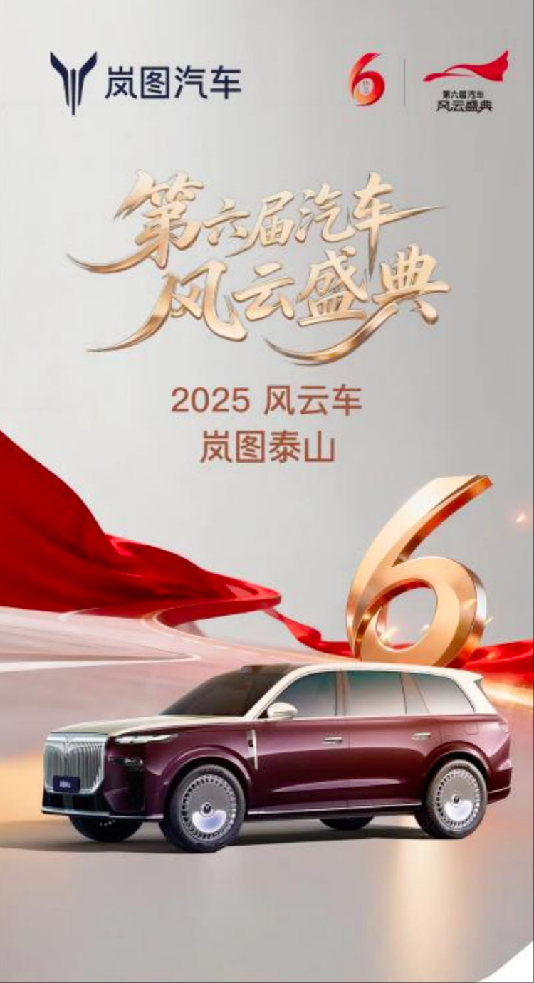 作为央视总台唯一汽车类融媒体盛典,《汽车风云盛典》被誉为中国汽车界的“奥斯卡”,旨在评选出针对中国市场、引领未来发展趋势的年度车型与技术。岚图泰山能够在此权威盛典中斩获“2025风云车”,充分彰显了行业与市场对岚图泰山产品实力及技术创新的高度认可,树立起中国豪华大六座SUV的全新标杆。
