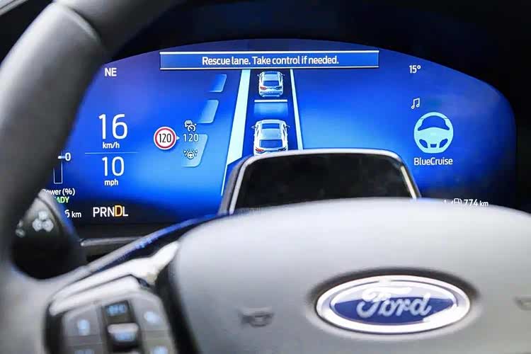 本次欧规Kuga升级的核心重点在于引入2023年在野马 Mach-E车系首次使用的BlueCruise主动驾驶辅助系统。该系统已获准在欧洲多个国家的特定高速公路路段使用。在这些路段中,Kuga驾驶者可将双手离开方向盘,由车辆自动控制转向、加速与刹车,大幅减轻长途行驶的疲劳。为了确保行车安全,系统配备了红外线侦测镜头,会持续监测驾驶者的眼神与头部位置,确保其注意力始终维持在前方路况。