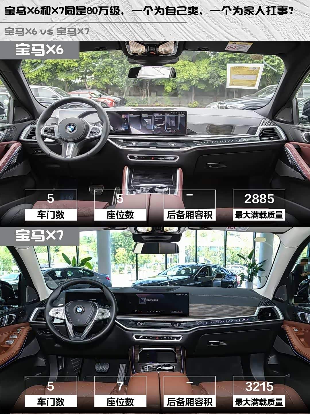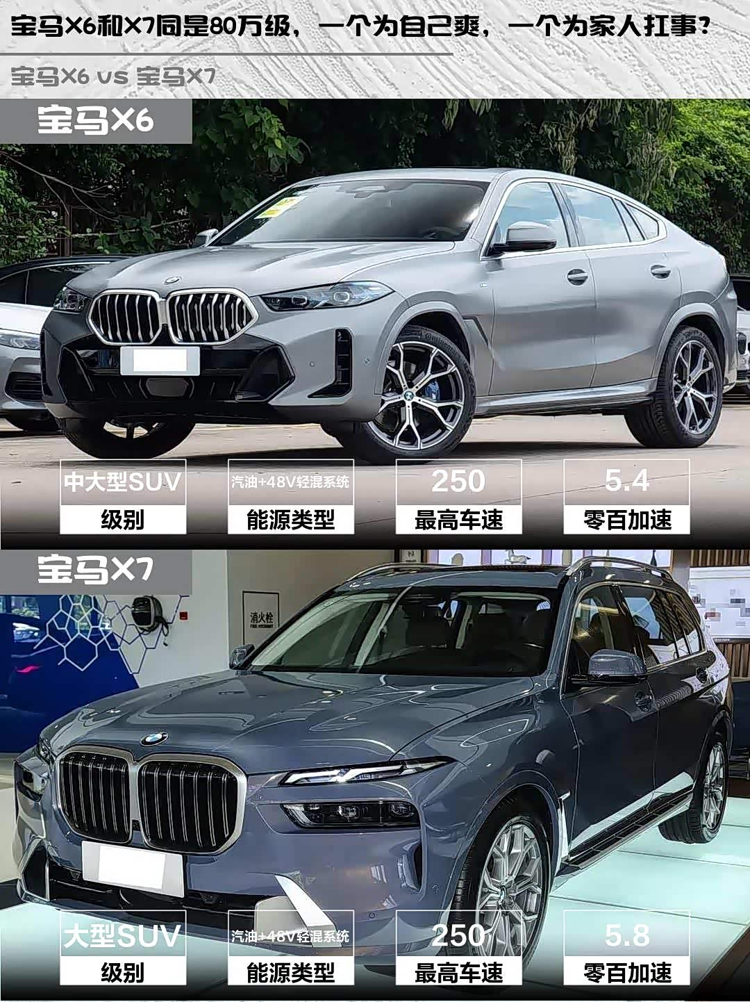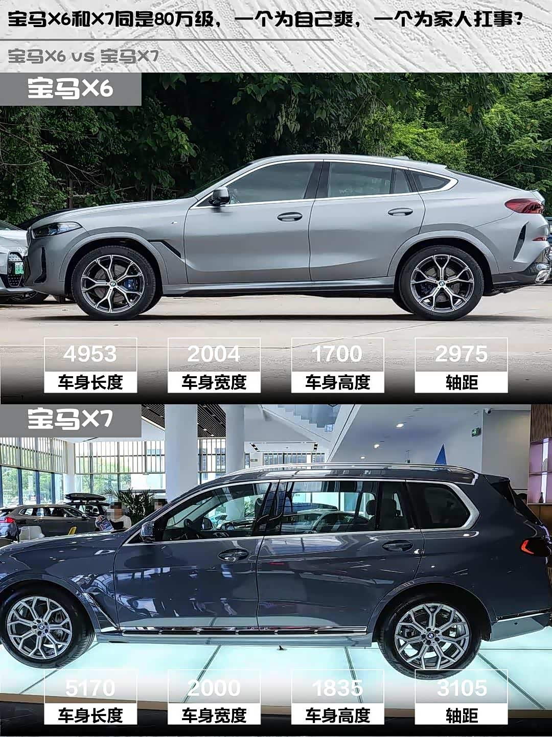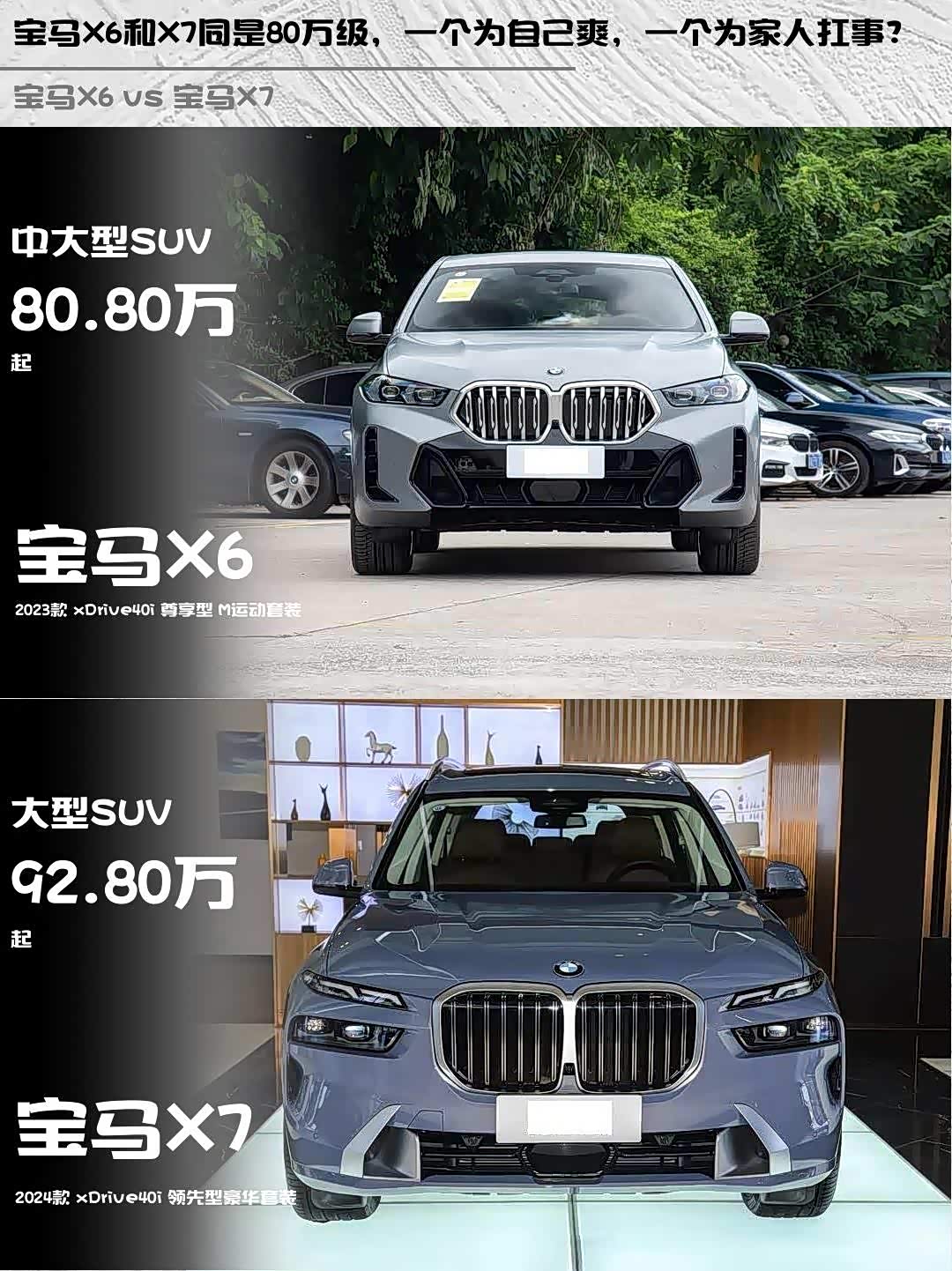 最近后台好多兄弟在问:80万预算,宝马X6 2023款 xDrive40i 尊享型 M运动套装和宝马X7 2024款 xDrive40i 领先型豪华套装到底该选谁?今天就来场硬核对比!🔥