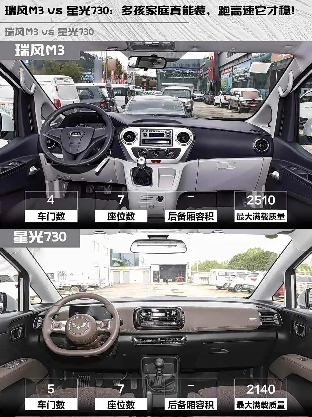 最后说价格,瑞风M3指导价7.39万,星光730是7.30万,但五菱终端通常有3-5k优惠。要问我推荐谁?要极致空间和耐造选瑞风,要舒适性和动力选星光,评论区告诉我你的选择!👇