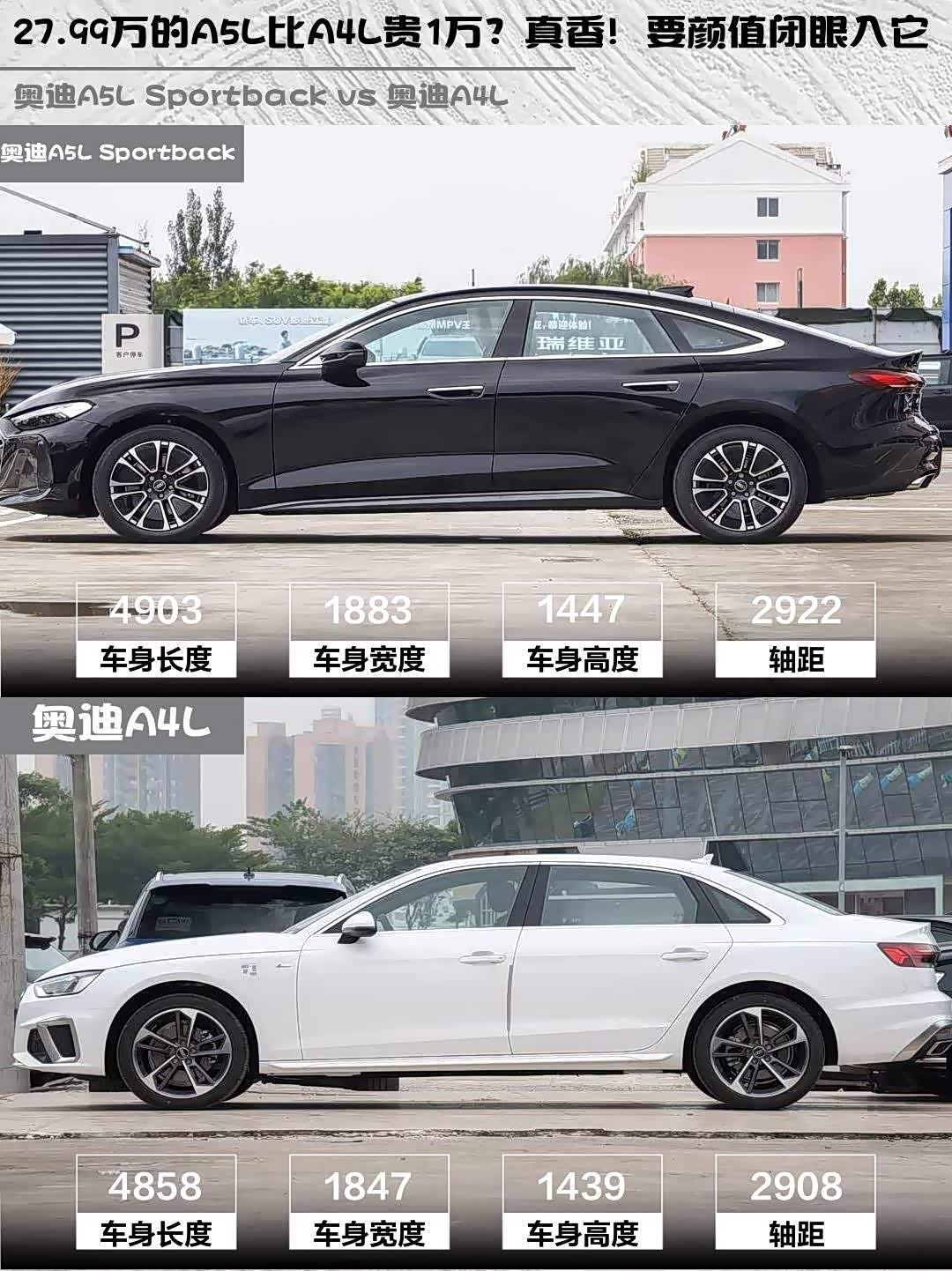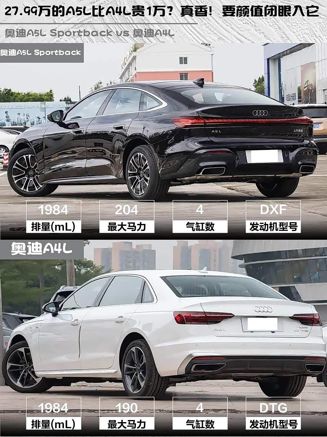 最近后台好多人在问 奥迪A5L Sportback(参数|询价)和A4L怎么选,作为两款定位不同的奥迪中型车,今天就来个深度对比!🔥