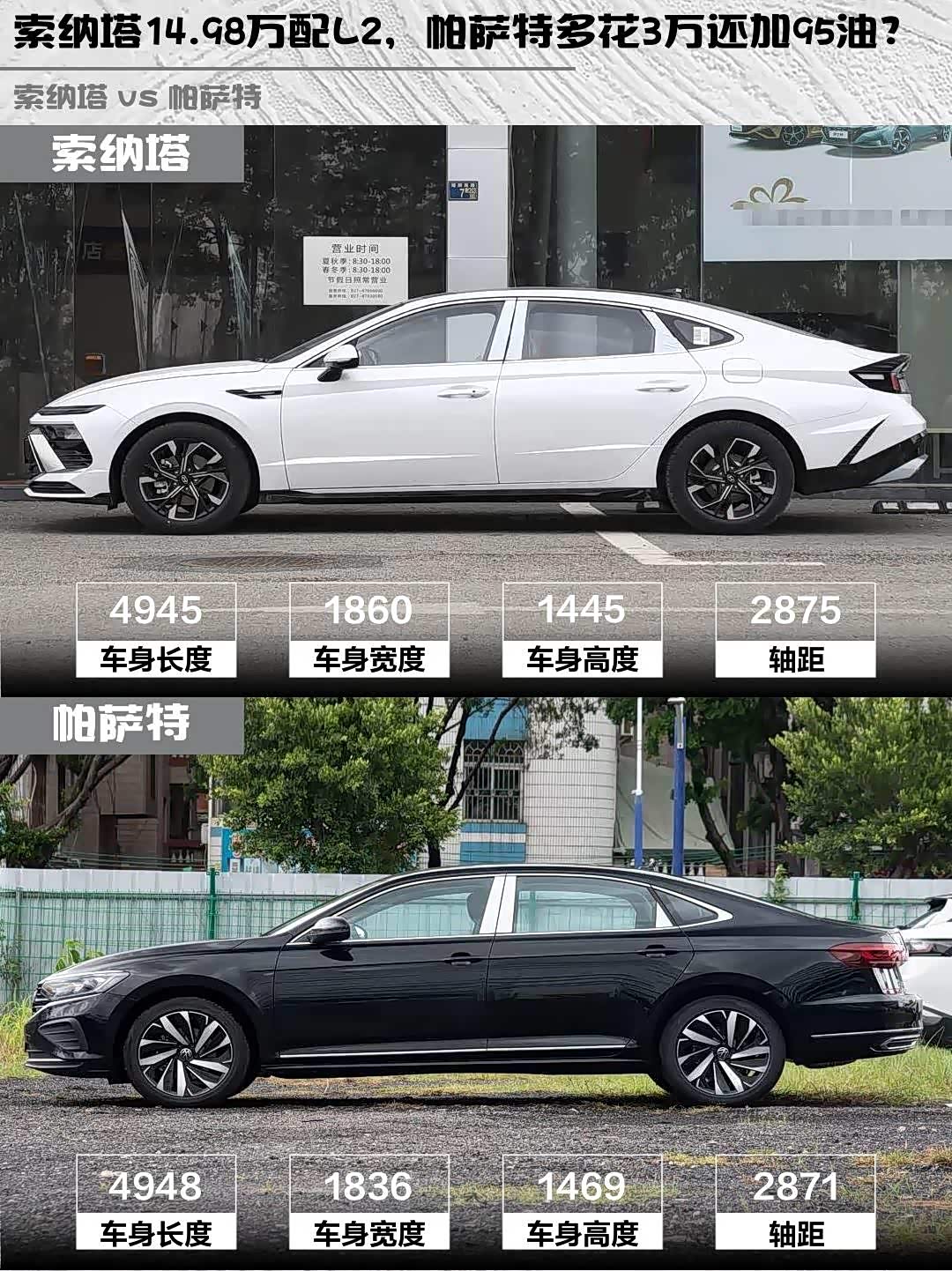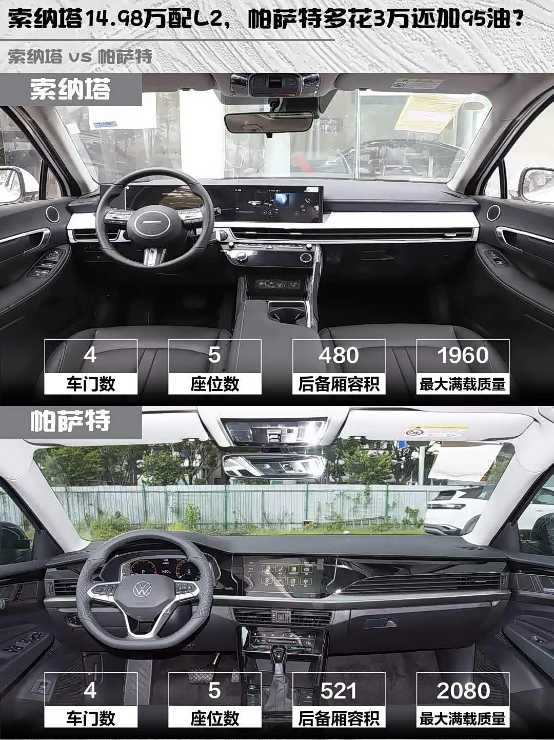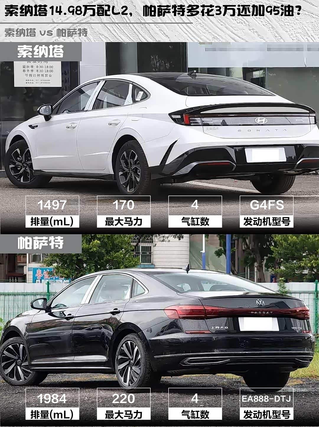 索纳塔14.98万配L2,帕萨特多花3万还加95油?