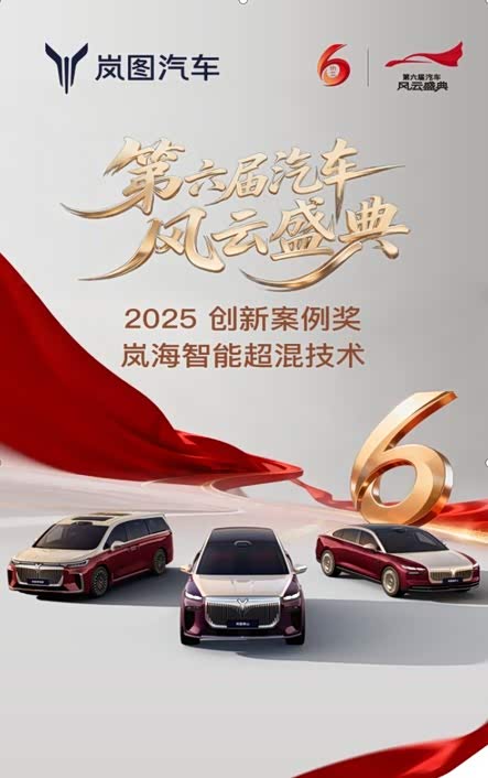 2月15日晚,由中央广播电视总台主办、财经节目中心特别策划的汽车行业年度“车晚”——第六届《汽车风云盛典》盛大启幕。凭借划时代的岚海智能超混技术与最霸气的华系旗舰SUV岚图泰山, 岚图汽车一举斩获“风云2025年度创新案例”与“2025风云车”,成为本届盛典中极少数技术与产品双线登顶的品牌。