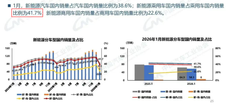 这导致的结果就是,国内市场新能源汽车销量占比从去年底超50%骤降至1月的38.6%。不过,随着政策企稳,新能源汽车未来也将与燃油车形成有效互补。