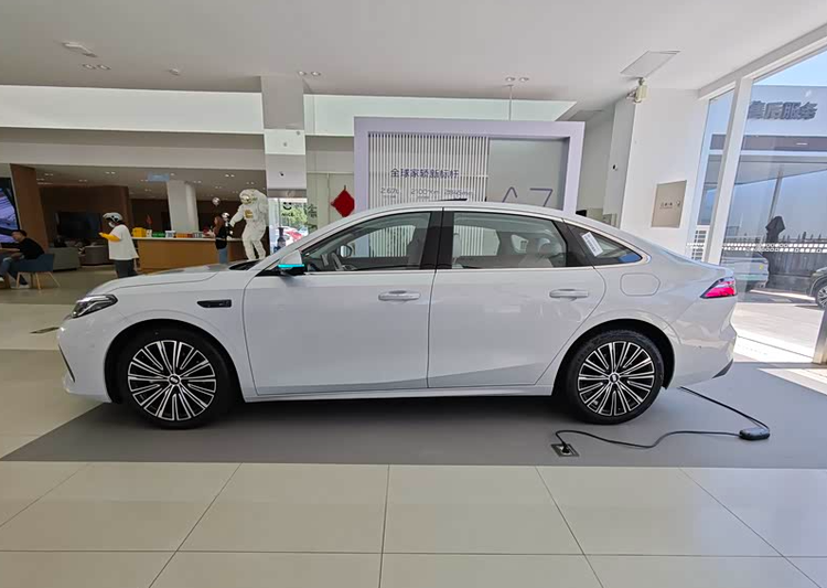 前脸把进气格栅封死了,搞了个全封闭造型。比插混版那个“大嘴”看着顺眼点,至少不那么碎。屁股后面那个“EV”标贴得倒是挺低调。