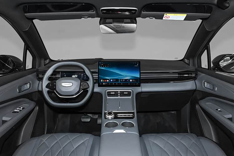 博越REV的中控台设计贯穿样式的空调出风口,采用电子怀挡,配备双辐式多功能方向盘,内嵌式8.8英寸液晶仪表和悬浮式14.6英寸中控大屏,副仪表台区域为上下双层结构,上面一层有50瓦风冷手机无线充电面板、空调控制实体按键以及音量实体旋钮等。