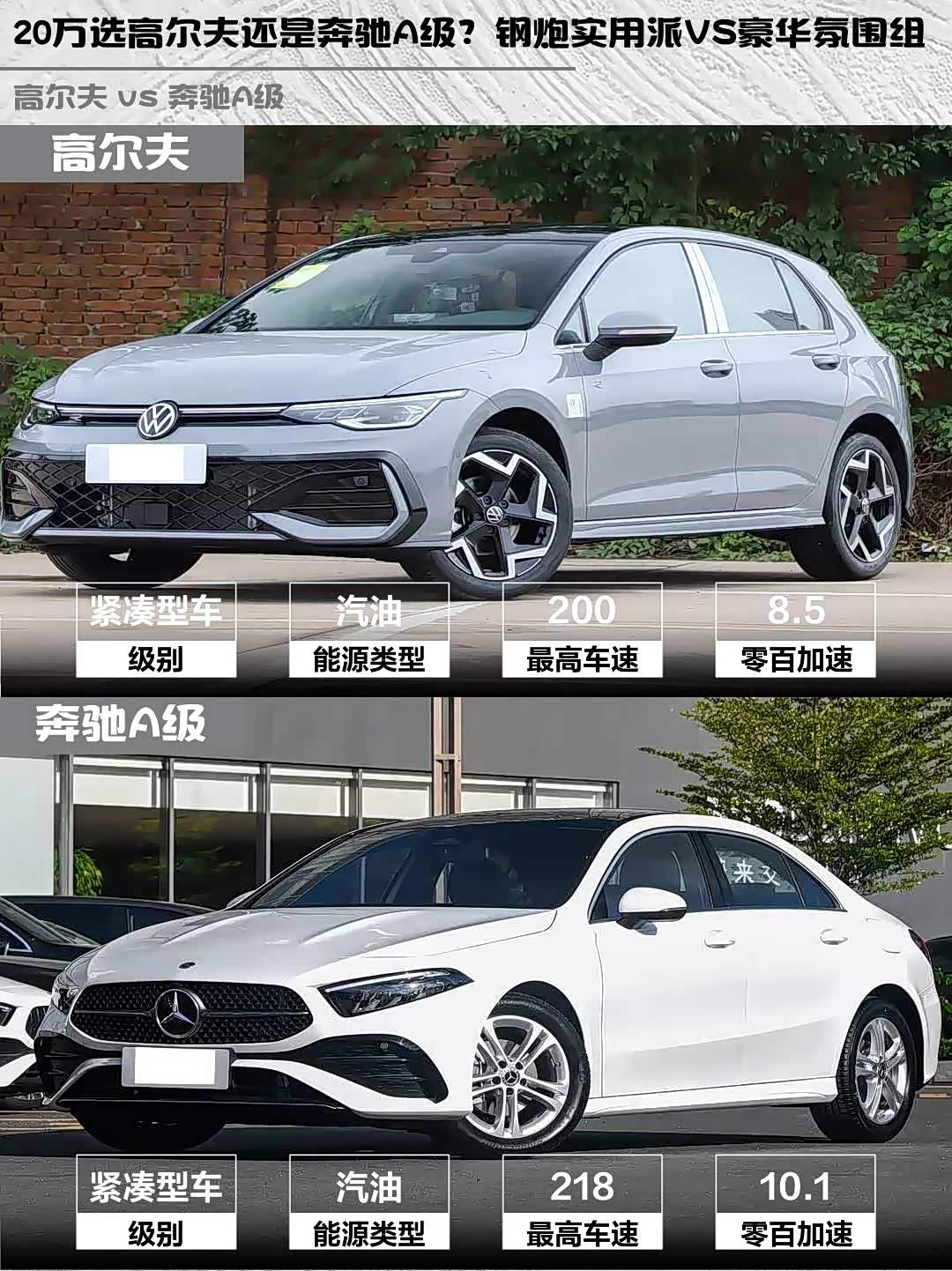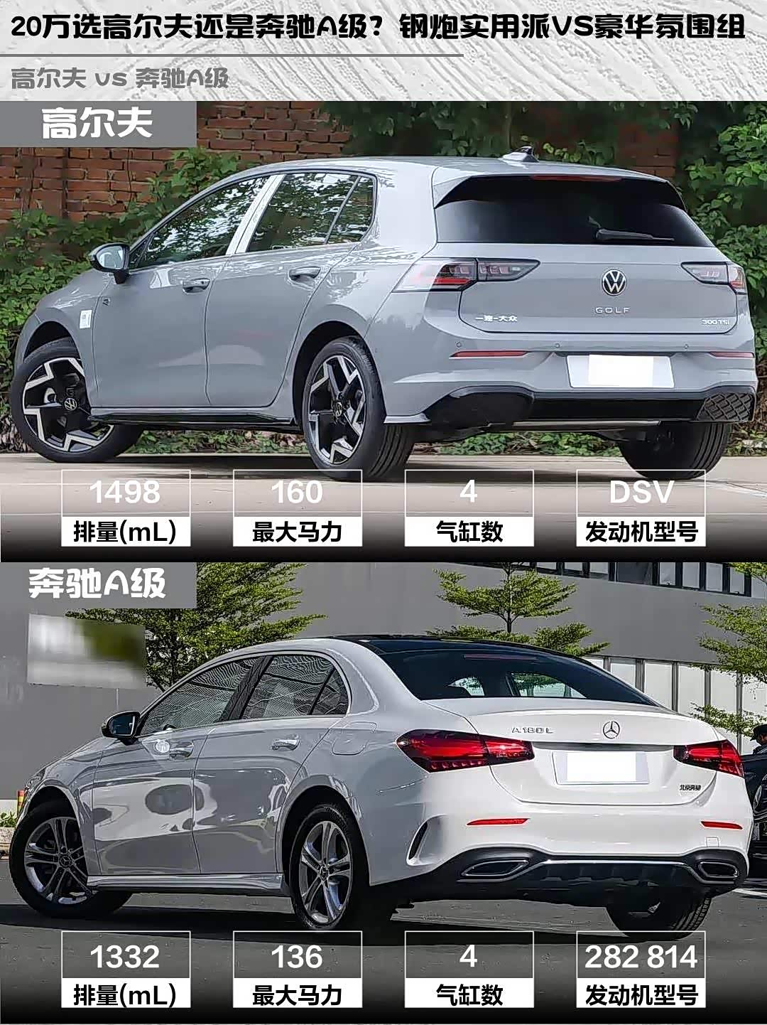 要驾驶乐趣+性价比选高尔夫300TSI R-Line:城里超车灵活、改装潜力大、加油不肉疼。要品牌光环+精致感选奔驰A180 L:星辉标社交属性拉满,内饰拍照发朋友圈绝对收获一堆点赞。