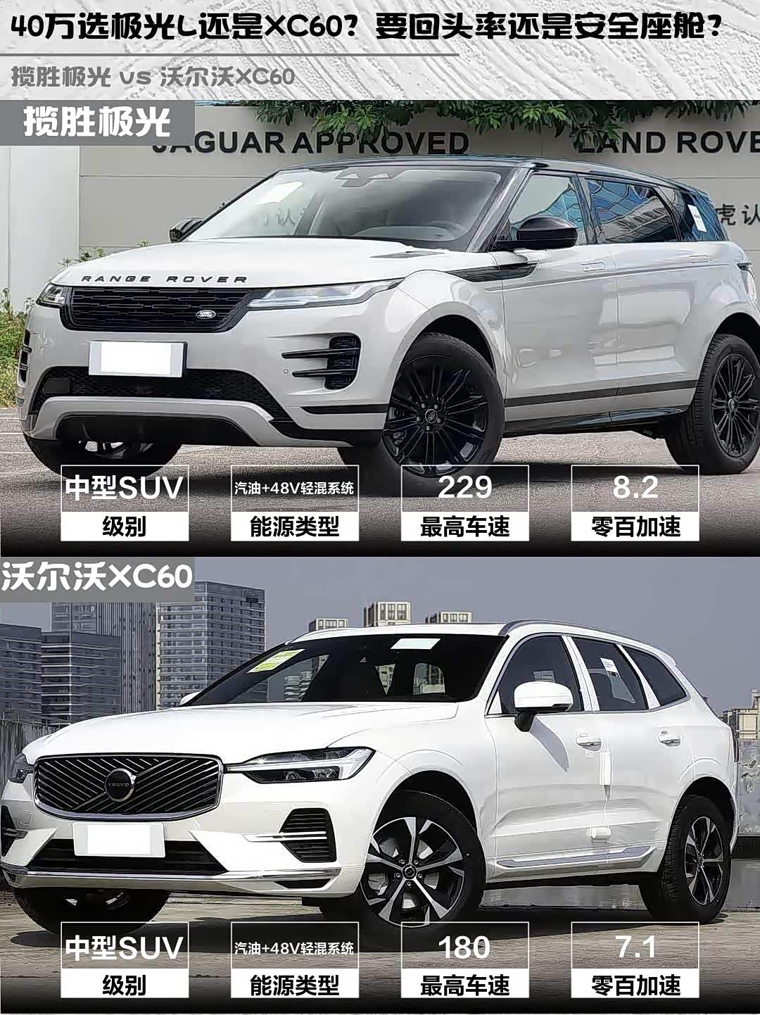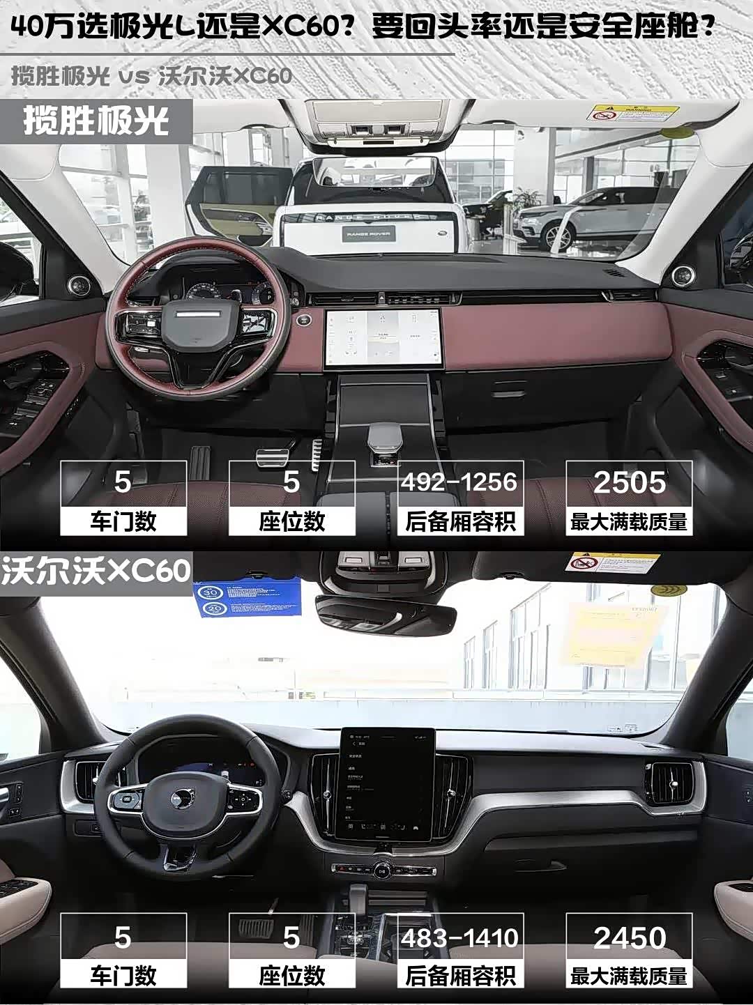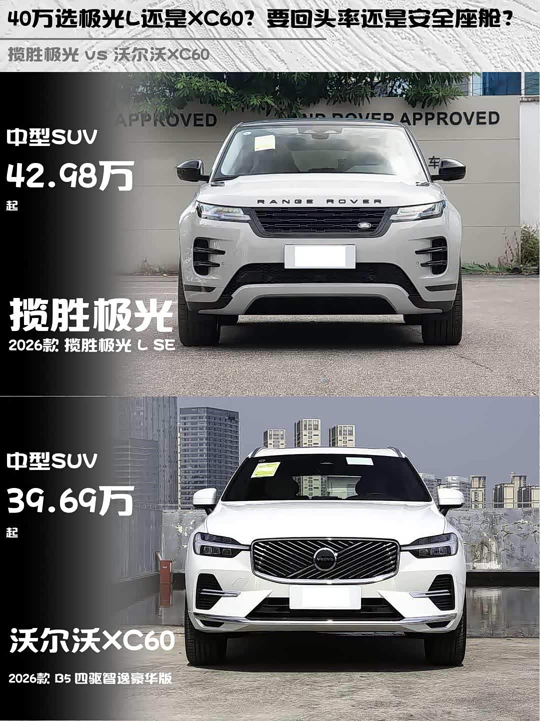 最近身边好几个朋友都在纠结40万级豪华SUV怎么选,今天就来聊聊2026款揽胜极光L SE和 沃尔沃XC60(参数|询价) B5四驱智逸豪华版这对北欧绅士VS英伦型男的对比🆚