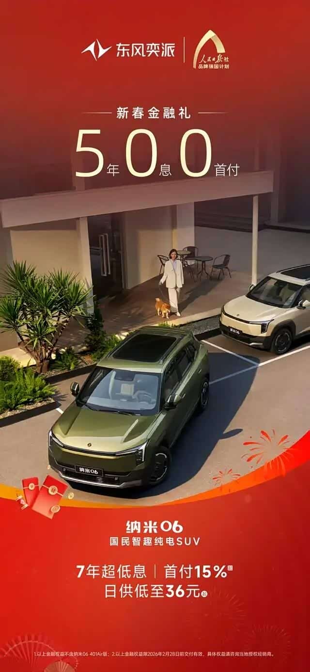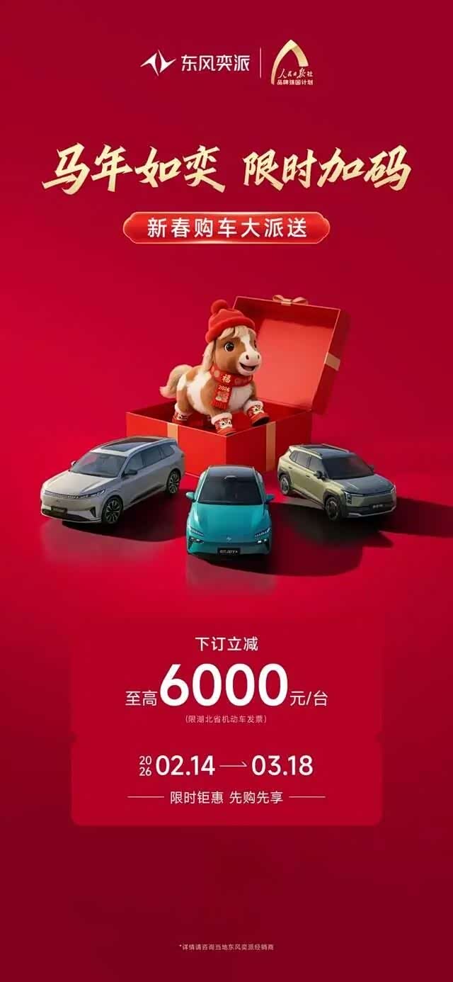 好车不等人,福利限时享!从产品到服务,从权益到体验,东风奕派始终坚持以用户为中心,回馈每一份信赖与选择。开年购车正当时,除以上车型,“大美智能国民车”纳米01也携4000元购置税补贴、5年0首付0利息的新春金融礼等权益而来,为消费者带来更丰富的出行体验。东风奕派这份“开年大礼”多重权益不断加码,此时入手新车正是最佳时机!别再犹豫,诚邀广大消费者莅临东风奕派授权门店试驾品鉴,把心仪爱车带回家,与家人朋友开启不“奕”样的美好新年旅程。