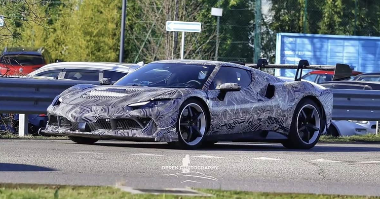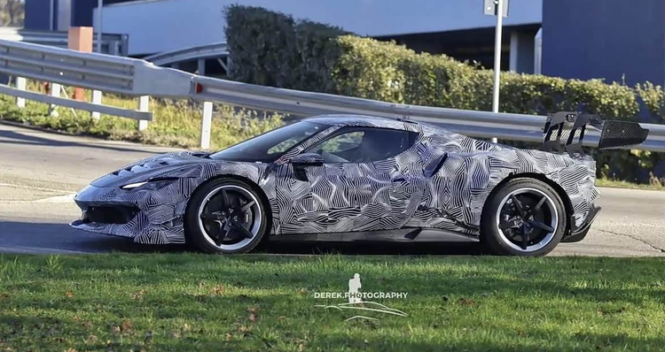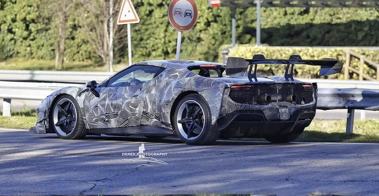 从披露的谍照来看,新车虽然覆盖着厚重的伪装贴纸,但一些关键设计元素已清晰可辨。其前脸部分装配了一套全新的前保险杠,整体造型与现有的296 GTB、Speciale乃至纯粹的Challenge赛车均存在差异,进气口的形状与布局经过了重新构思。发动机舱盖上显著的鲨鱼鳃式通风口,不仅服务于散热功能,也大幅提升了车头的视觉冲击力。车身侧面轮廓依然保持着296车系标志性的比例与线条,测试车辆装备了造型简洁的五辐轮圈以及近乎光滑的热熔轮胎,这直接表明了其偏向赛道驾驶的研发取向。