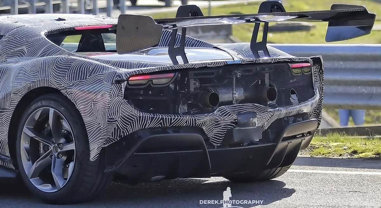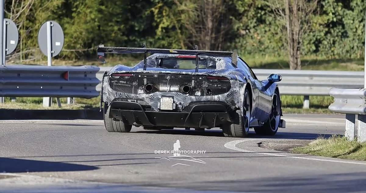 车尾部分是辨识其特殊身份的重点,尽管有部分遮挡,但仍可观察到其排气系统采用了偏中置的双出布局,这与Speciale车型有所不同,更接近赛道化设定。后包围的网状格栅与扩散器结构也显得更为激进,预示着在空气动力学效率上会有相应提升。