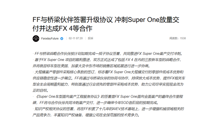 又是长城哪些车?贾跃亭旗下FF与桥梁伙伴签署协议,开发3款新车