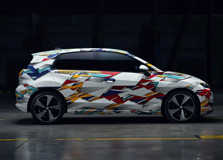 我们先简单看下新车,从图中看,该车有点像大众的高尔夫,但仔细看的话,高尔夫应该是比它大一些,这台车应该是一款小型车,虽然车身包裹了一层车衣,但也可以看到新车的部分设计。首先在前脸上,新车用上了贯穿式灯带,中间的LOGO也能发光,夜晚点亮后辨识度很高;更有意思的是,该车从侧面看,只有一个门把手,后面车门的门把手图中并未显示清楚,可能是被车衣遮住了,或者是后面的门把手在别的位置。