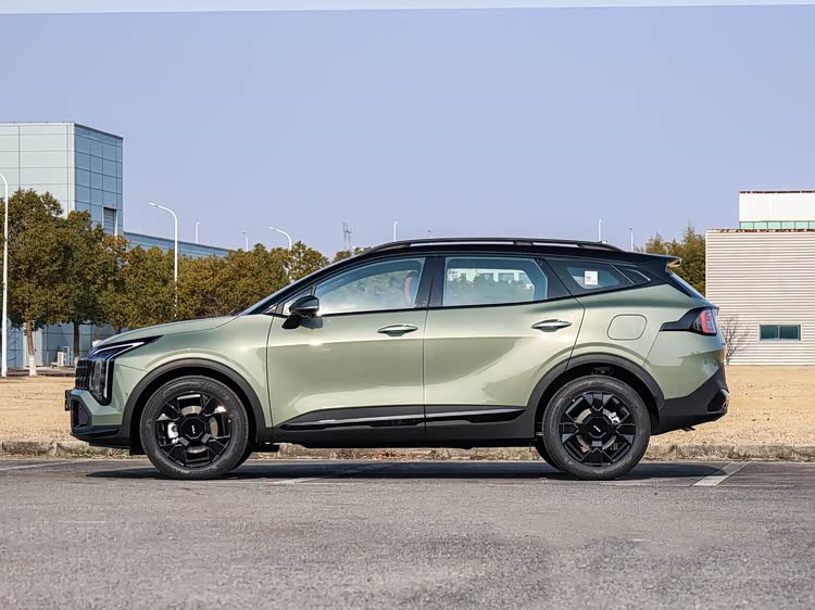 新款起亚狮铂拓界的车身轮廓延续现款车型的风格,上扬的侧窗、间断式双腰线以及黑色轮眉等,营造出一定的运动感,并且2.0T版本的车顶、外后视镜都做了黑色处理,轮眉为亮黑色材质,轮毂样式与1.5T版本不一样。