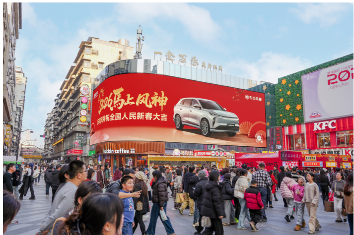从龟山塔顶俯瞰,两江四岸尽收眼底,武汉的发展脉搏清晰可感。而塔下的这匹“红马”,正蓄势待发,以敢为人先的姿态,与这座英雄之城同频共振。在江汉路步行街,风神的红色身影也融入新春的热闹里 —— 正如当年疫情解封一周年那天,风神品牌与武汉市民一起 “开街”,用滚滚车轮唤醒沉寂的城市。从艰难时刻的并肩前行,到新春佳节的同频焕新,东风风神始终站在用户身边,懂这座城的坚韧,也懂这座城的浪漫。要与武汉一起跑出加速度。