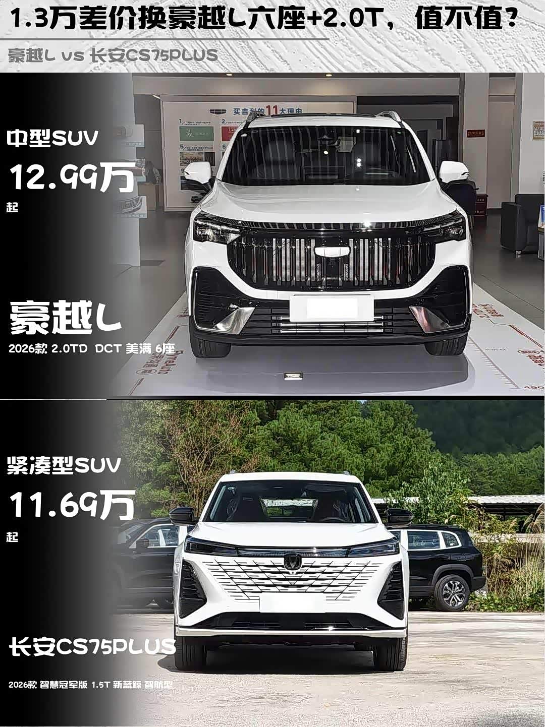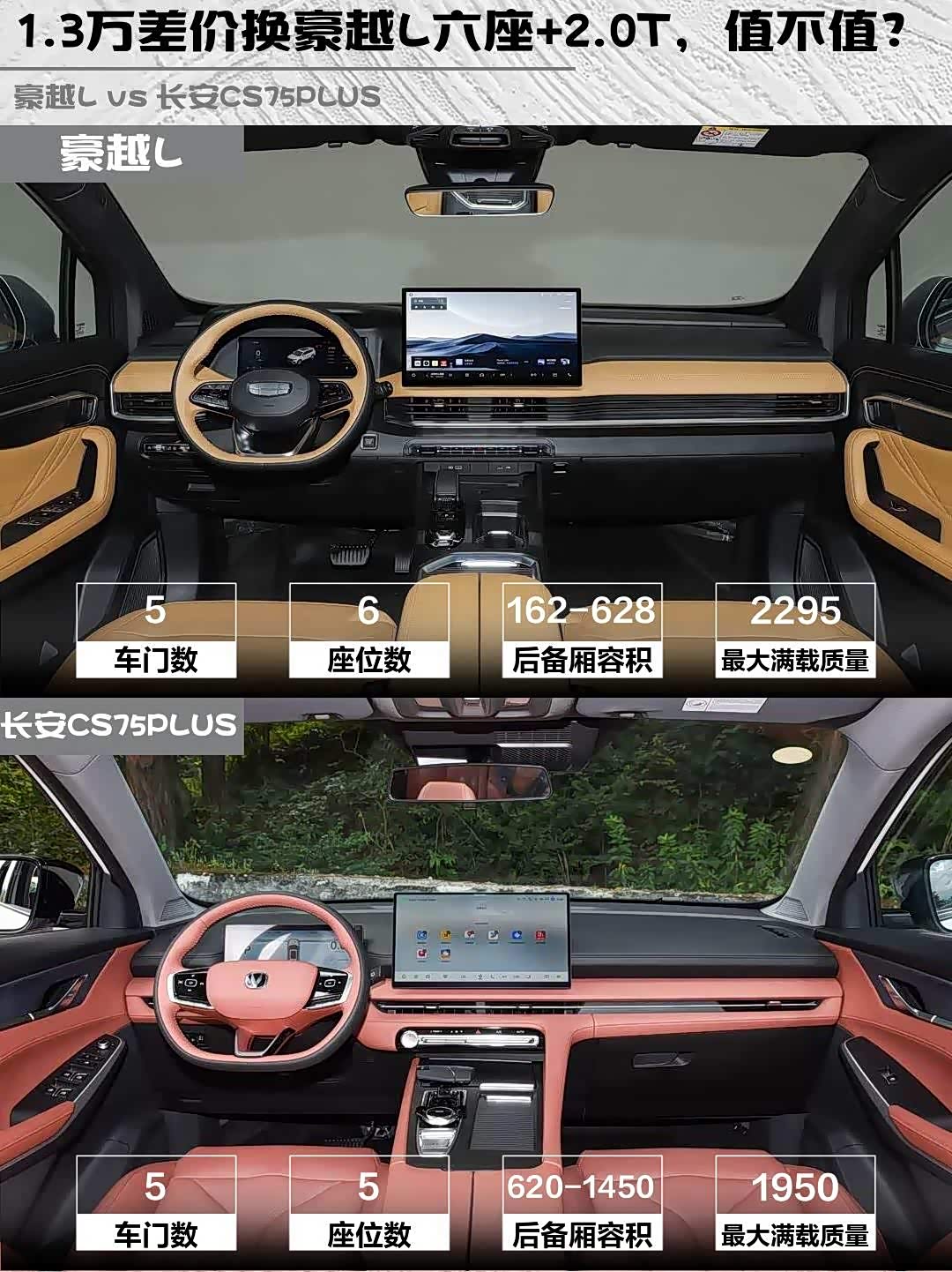 最后说价格:豪越L指导价12.99万,CS75PLUS 11.69万,差价1.3万换更大空间和更强动力,你觉得值不值?如果是你会选哪款?评论区聊聊你的选择理由吧!