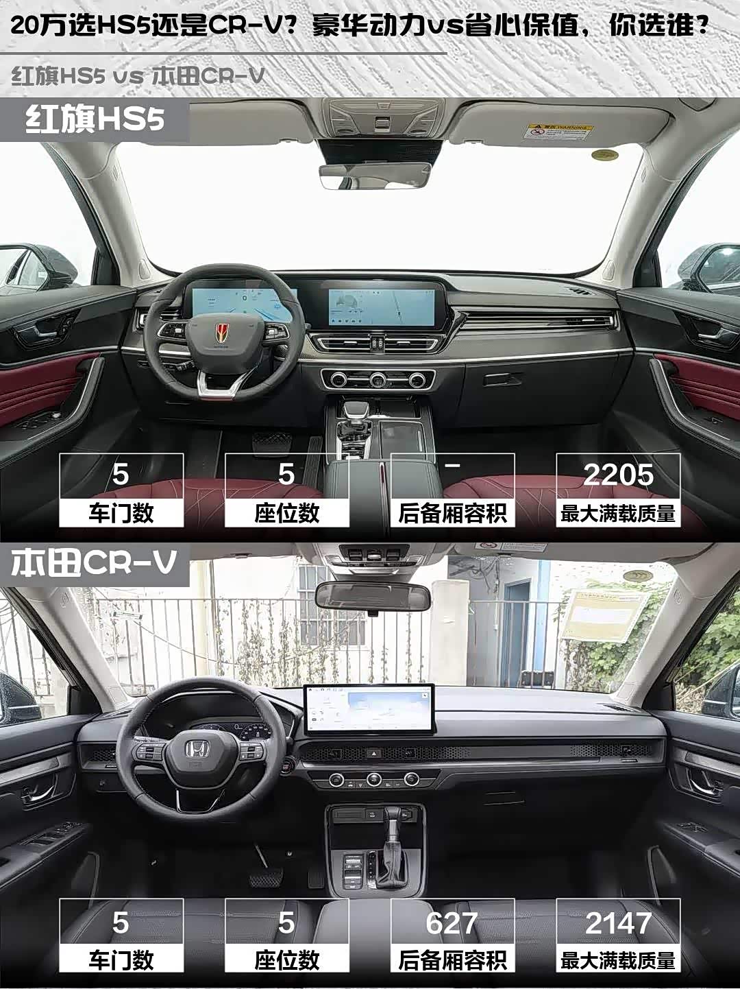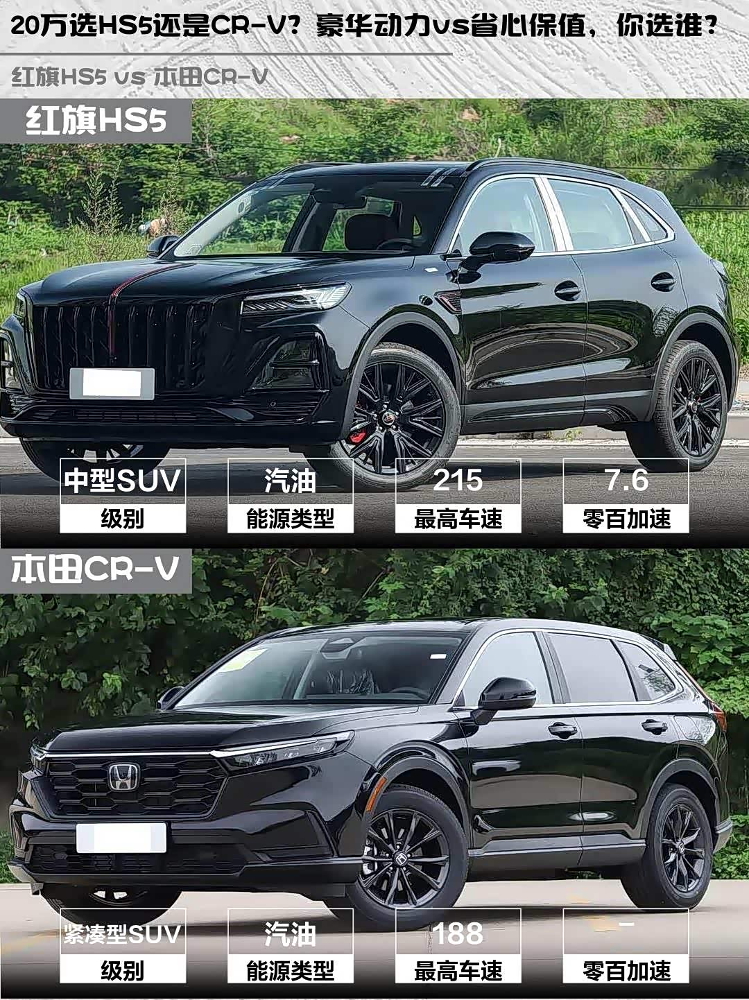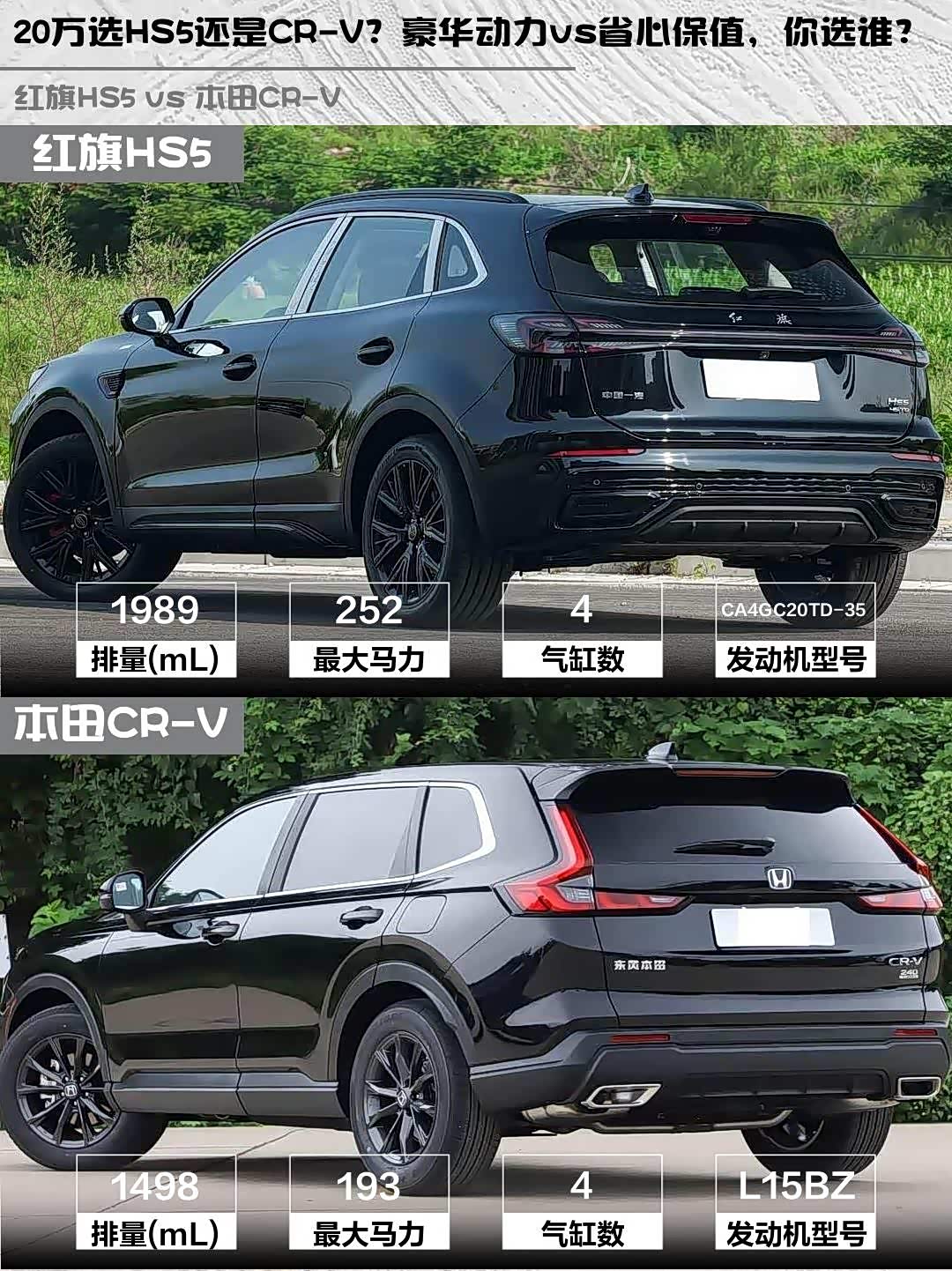 总结:要豪华感+动力选HS5,要省心保值选CR-V!两款车终端价都在20万左右,HS5配置碾压但油耗略高,CR-V经济实用但隔音一般。你们会pick哪款?评论区见!👇