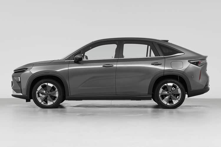 侧面造型方面,车顶采用了溜背式造型,有着浓浓的轿跑SUV风格,腰线采用了贯穿式设计,从前翼子板延伸到车尾,点缀出了车身侧面的层次感;门把手依然是传统的门碗造型,主打实用性;轮眉和侧裙部分设计有粗壮的黑色饰板,进一步增强了力量感;轮毂则是五幅式双色造型,风格还算大气。