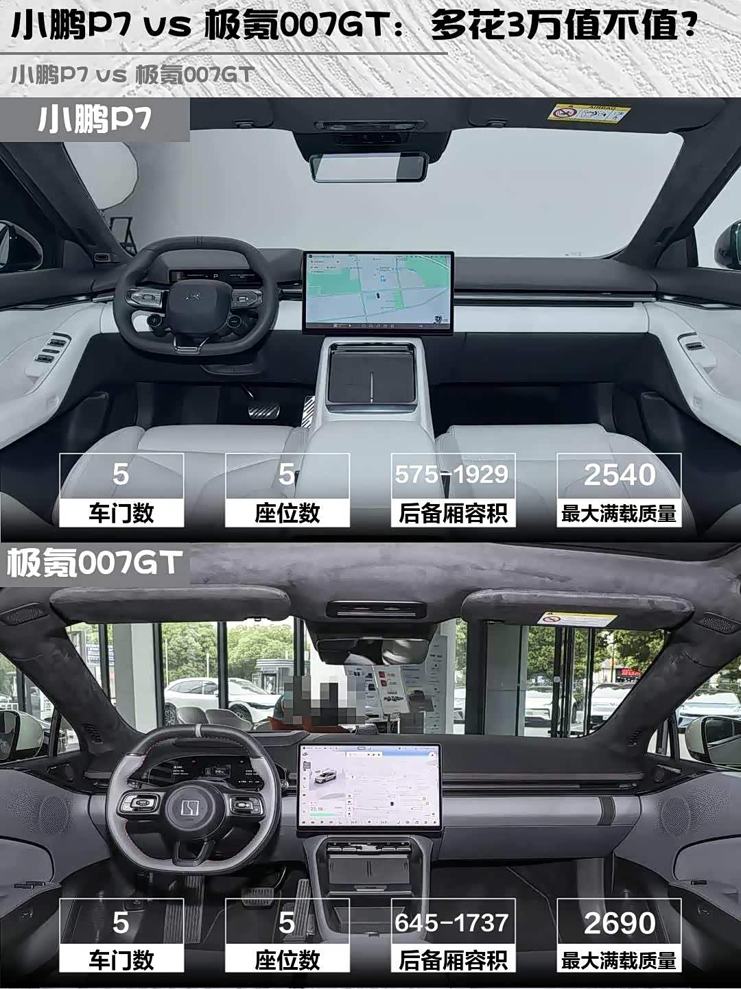 个人建议:追求续航和舒适选P7,喜欢猎装造型和激进驾驶选007GT。两款都是同级佼佼者,试驾时记得重点体验智能泊车和高速领航功能,科技感真的能改变用车习惯!