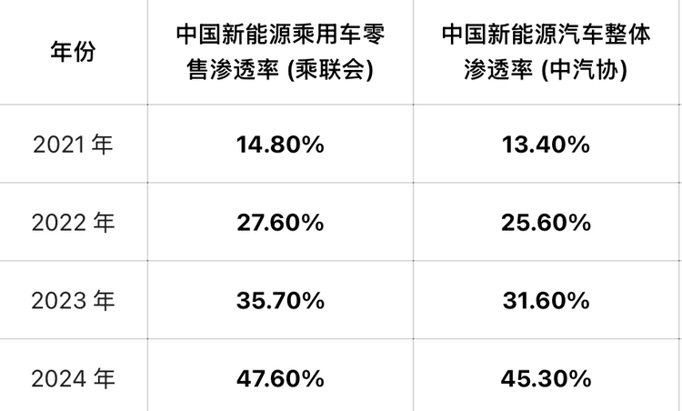尤其是2021年以后,中国新能源就开启了“狂飙模式”,比亚迪也在这一年开始迅速崛起,新能源汽车市占率每年以10%的速度增长,到2025年,中国新能源车销量占比第一次超过燃油车,突破50%,比亚迪更是挤进全球车企前五。