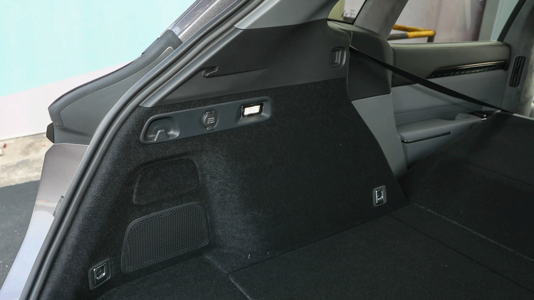 极氪7X:纯装载能力位列第二梯队,后备厢基础尺寸竞争力拉满,905L 常规容积搭配1050-1220mm的超宽横向空间,大件装载能力突出,拓展配置更是丰富实用。后排座椅支持4/6比例电动放倒,还可实现电动前后调节,能灵活腾挪出更多后备厢空间,专属装载模式调节离地间隙、220V+12V双电源、三段式可折叠盖板等配置,让装载的便利性和体验感大幅提升。仅前备厢38L的空间偏小,无法容纳行李箱,一定程度上限制了小件装载的拓展性。