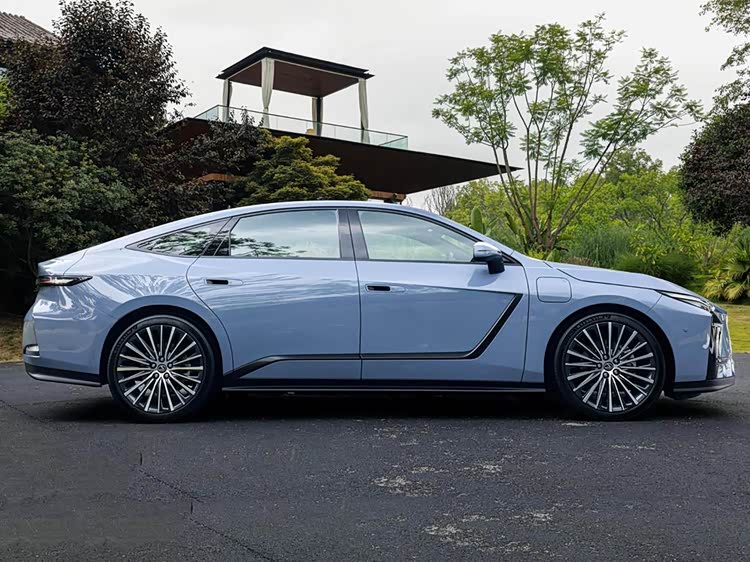 来到侧面,整体呈现出大溜背造型,加之上扬的立体腰线,以营造出蓄势待发的姿态。此外,新车还配备了酷似比亚迪腾势Z9GT那样的“L”形熏黑饰条,单就视觉效果来说,我觉得是有点“画虎不成反类犬”的感觉,你们觉得呢?