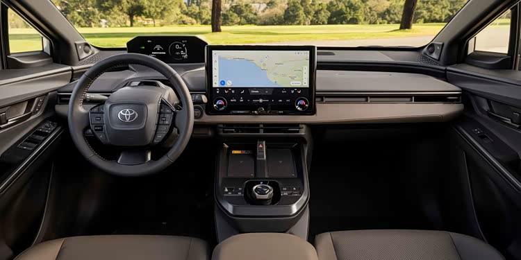 内饰部分,新车延续bZ4X设计,配有悬浮式液晶仪表以及14英寸悬浮式触摸屏,并且保留不少实体键,同时采用雷克萨斯同款机械式旋钮设计。