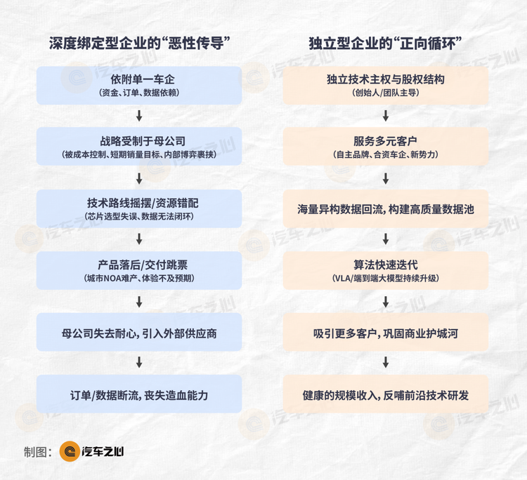 至此,智驾企业内部孵化这条路径基本终结,而独立智驾企业却屹立不倒。