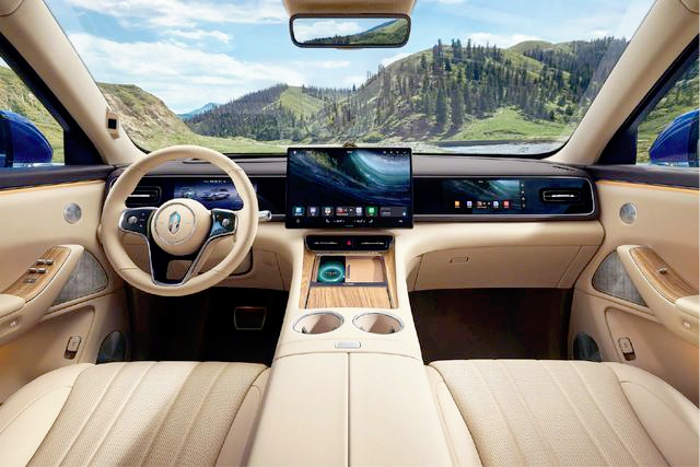 进入车内,内饰基本还是老样子,三块屏布局没变,营造出非常不错的科技氛围,车机系统还是华为鸿蒙智能座舱,操作上的流畅性和界面的清晰度,都是没啥可挑剔的,5座6座随你选,配置上也是不抠门,冷暖冰箱,第二排隐私帘,HUD抬头显示都在。当然真正与同级拉开差距的是带激光雷达的高阶智驾版本,给人的感觉更像是软件全面升级啊,而不是什么换壳新车。
