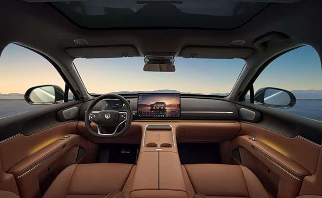 外观早就不新鲜了,但再看还是忍不住多说两句。车长超5米2,车宽近2米,轴距超3米1,标准全尺寸MPV体量。DLP投影大灯加ISD交互尾灯,配上那标志性的大饼轮毂,科技感豪华感全拉满。有人说是“半价理想MEGA”,我倒觉得零跑这回没抄作业,设计上那三段式贯穿灯和主动进气格栅都有自己的想法。